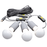 Use for emergencies or off-grid activities when you need light! Each USB cord has 15 ft. string from the USB connector and individual on/off switches. Each light is a low-wattage LED bulb.