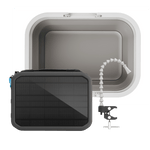 A water purification and sanitation system small enough to fit into a backpack, Flow uses solar energy or included 18wh lithium ion battery to pump water at 15 PSI, and can function as a portable handwashing station, source of clean drinking water, and much more. Everything a family needs for an off-grid water supply.